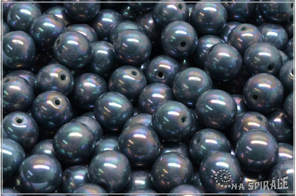 Kuličky ze sytého zelenomodrého skla s povrchovou úpravou Nebula, průměr 8 mm. Původ ČR - Rutkovsky. V balení 16 ks.