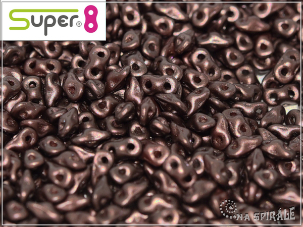 Nová česká mačkaná dvoudírková perlička - miniaturní verze dvoudírkového SuperDua. Rozměr 2,2x4,7 mm, otvor cca 0,8 mm, barva Pastel Dark Brown - vosková hmavě hnědá. Korálky jsou podlouhlého tvaru, ke konci výrazněji špičaté, elegantní, díky dvěma dírkám poskytují mnohem více možností použití. Vyrobeno v ČR.