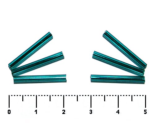 Tyčky zelenomodré barvy s průtahem, rozměry 20x2 mm. Původ ČR - Preciosa. V sáčku 20 ks.